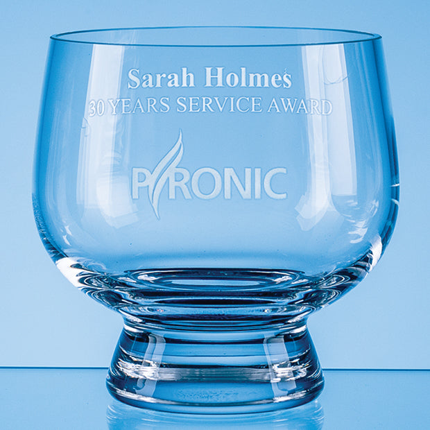 The handmade plain Tulip Bowl is a contemporary style and would make a great personalised gift. Add any crest, logo or wording to the large engraving area to create something that will be treasured and displayed with pride by the recipient. The wood base compliments the bowl and is perfect for display purposes.