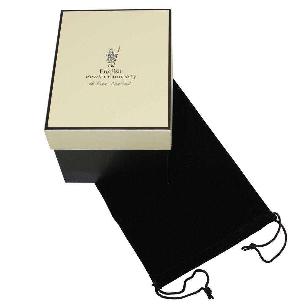 Stylish yet understated, this wonderful wine goblet is an extraordinarily elegant item which would make a magnificent gift on any special occasion, or can equally serve as a beautiful addition to your own home. The six inch goblet boasts an attractive medieval pills style shape, which shows up the mirror-like finish of the pewter perfectly, and can be made truly personal through the addition of your own choice of engraving. Lovingly crafted from the highest quality, lead free pewter this goblet will not tarnish over time and comes complete with its own chic cream and black presentation box that is adorned with the English Pewter Company logo.