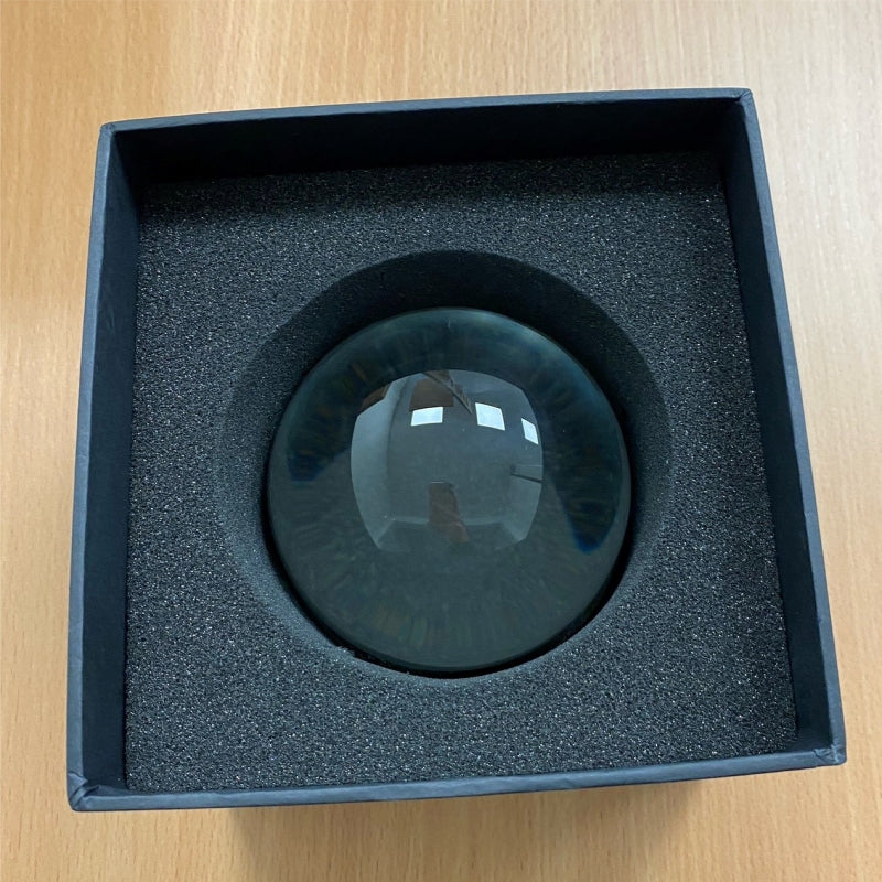 The 90mm (diameter) optical crystal dome paperweight is ideal for use as a personal or business gift. The dome top magnifies the design that is engraved onto the base of the paperweight. It can be personalised with any crest, logo or wording to create a gift that is sure to take pride of place when put on display at home or at work. Includes foam-lined lidded gift box.
