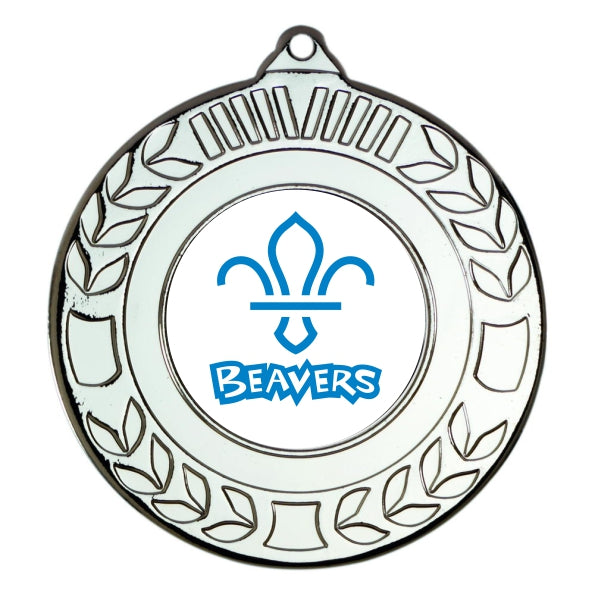 Beavers 50mm (2") Metal Medal - Complete with 25mm (1") centre disc. Suitable for personalised engraving of your choice on the back. Available with optional ribbon and/or box. Your own image / club logo can be uploaded, which will replace the centre disc shown.
