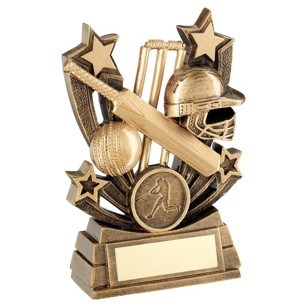 Bronze/Gold colour finish Shooting Star Series Cricket Trophy (Optional Custom 1in Centre). Available in 3 sizes with engraving of your choice. This award makes a great personalised gift, suitable for a range of events and presentations.