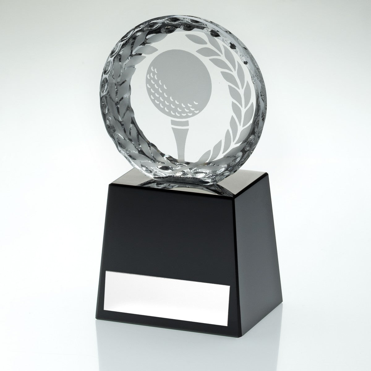 Clear Glass Golf Award - Engraved Plaque on Black Plinth