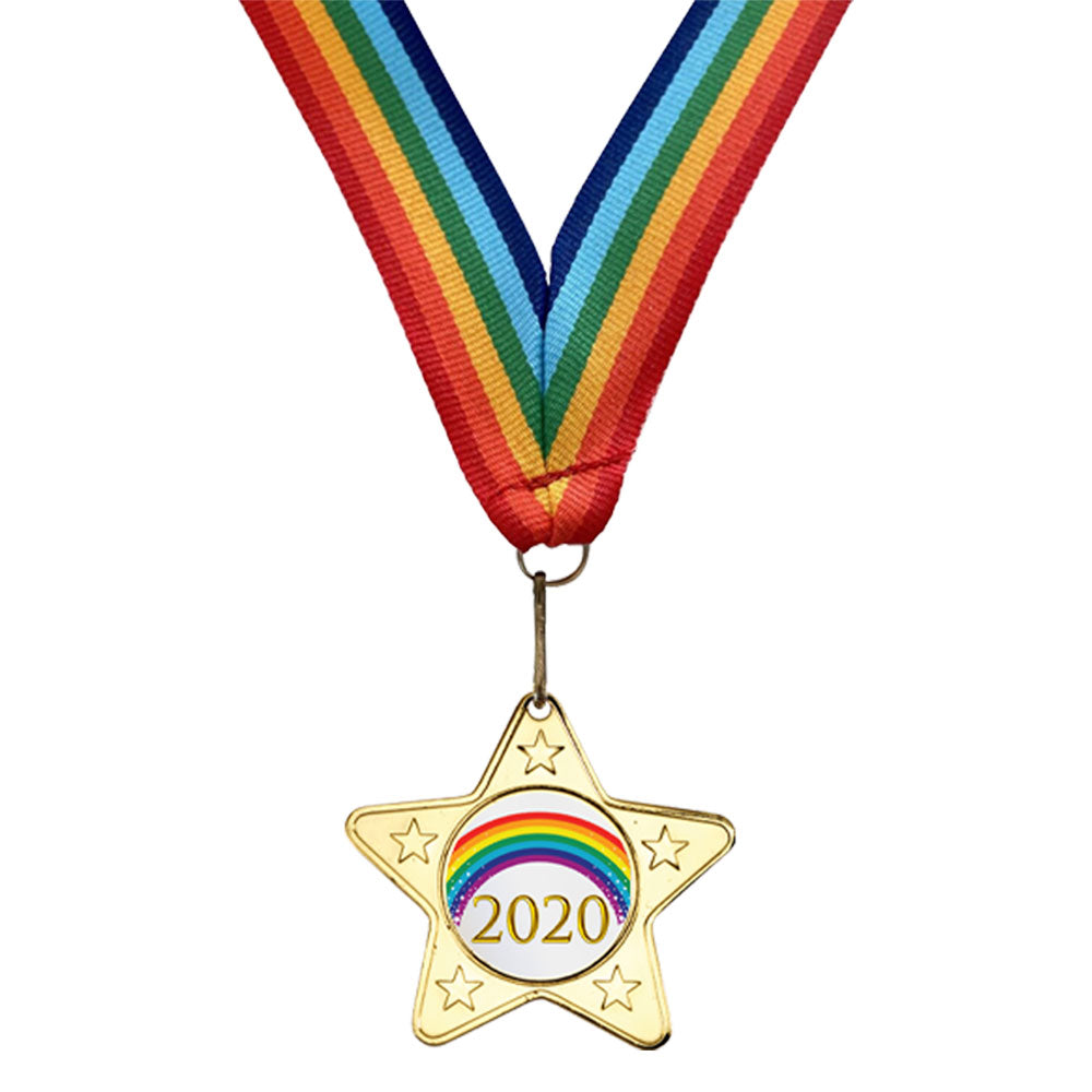 50mm Gold Star Medal - 2020 Rainbow With Ribbon
