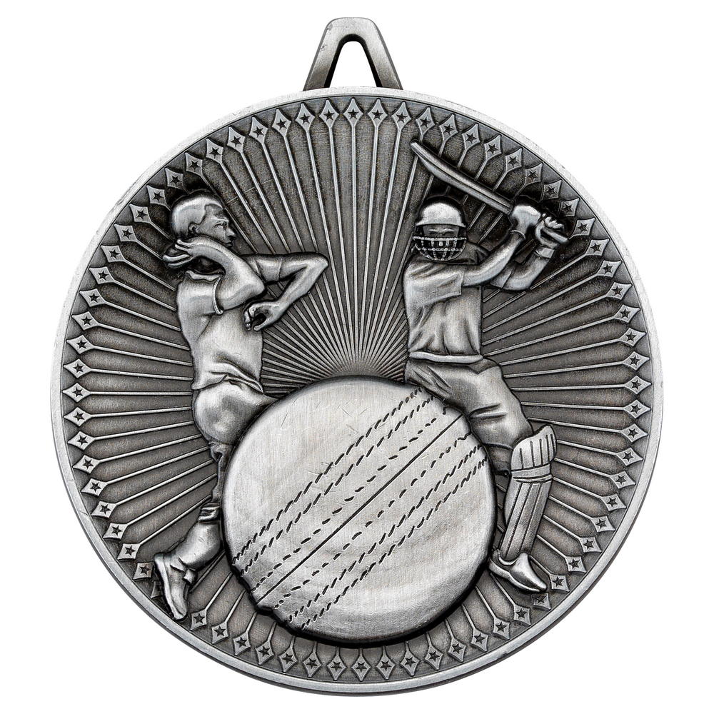 Cricket Deluxe Medal - Antique Silver 2.35in. Made of metal, this quality medal is available with optional engraving of your choice. Makes a perfect personalised gift for all occasions or presentations.