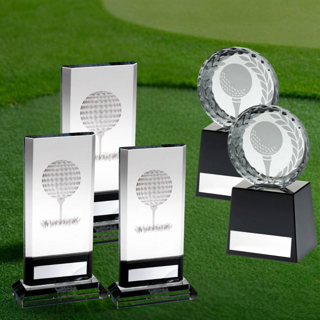 Celebrate excellence on the golf course with the Crystal Golf Awards Day Bundle. This set includes elegant glass plaque awards for key achievements such as Nearest The Pin, Longest Drive, and overall placement including Runner Up and Third Place. Each award features a sleek base, combining clarity and sophistication to honor outstanding performance. Perfect for tournaments and club events, these awards provide a distinguished way to recognize skill and sportsmanship.