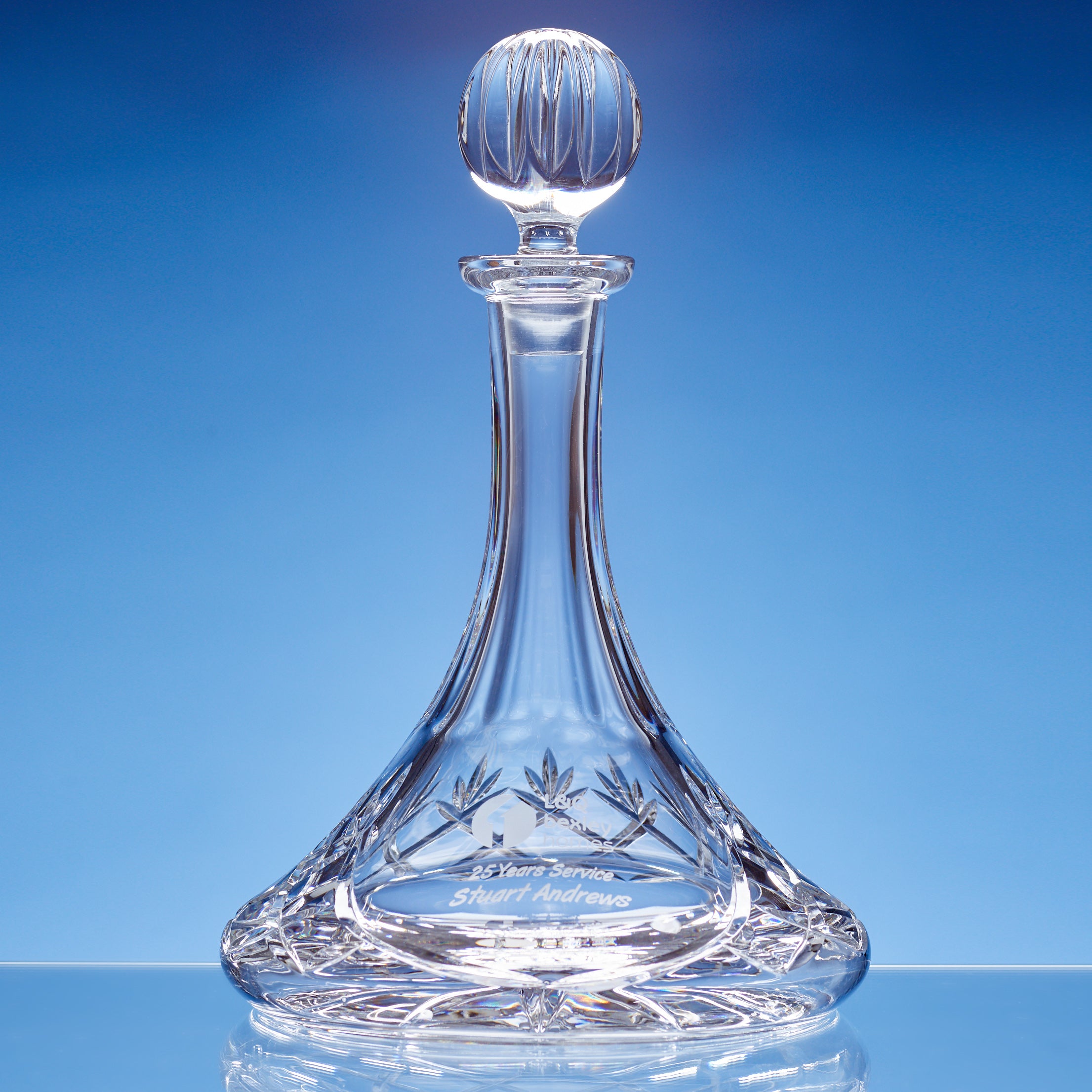 The traditional lead crystal ships decanter features a large engraving panel that can be personalised with any crest, logo or wording to create a gift that is sure to take pride of place when put on display at home or at work.