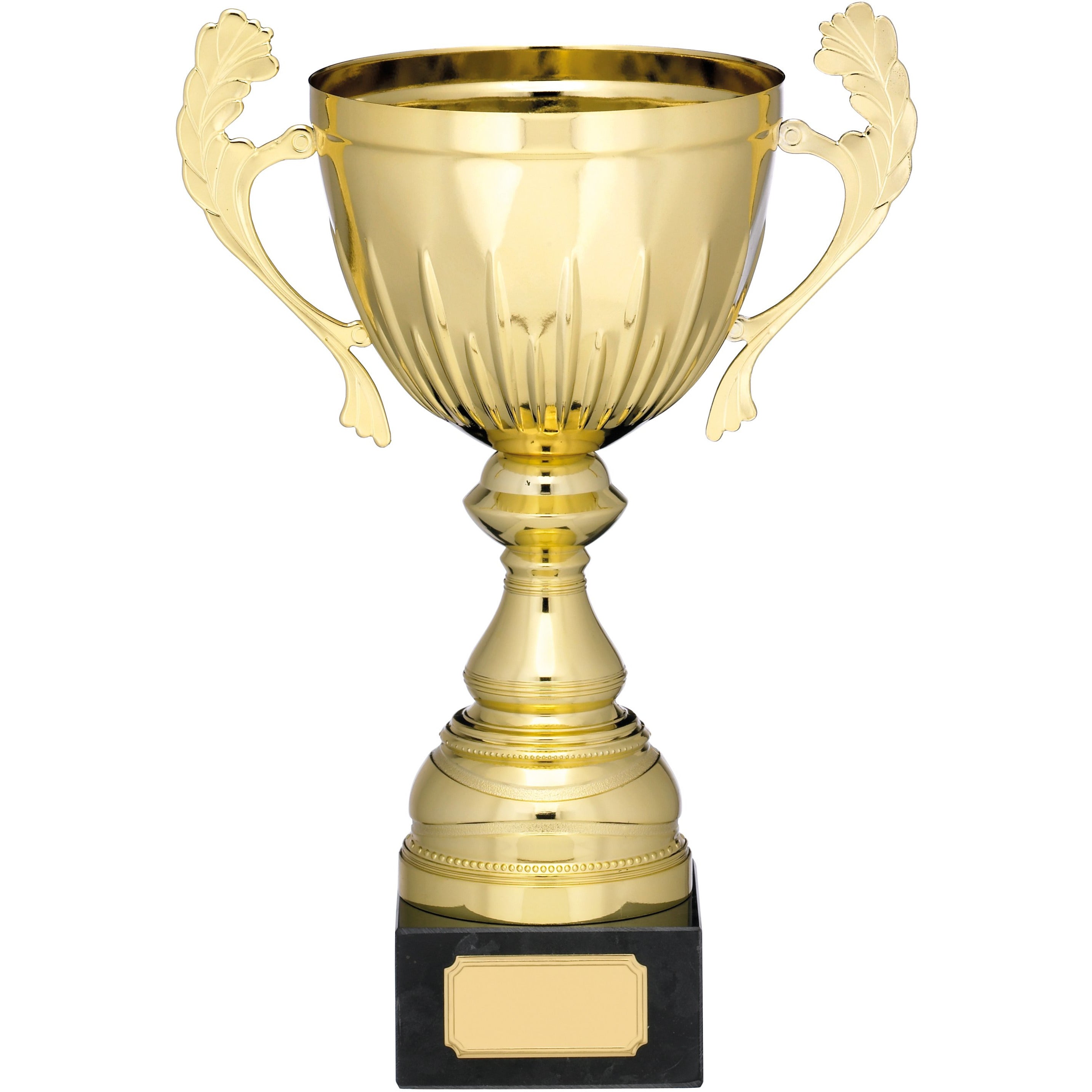 Gold Cup Trophy With Handles. Available with engraving of your choice. This personalised trophy is suitable for a range of events and presentations.