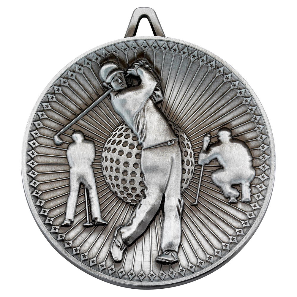 Golf Deluxe Medal - Antique Silver 2.35in. Made of metal, this quality medal is available with optional engraving of your choice. Makes a perfect personalised gift for all occasions or presentations.
