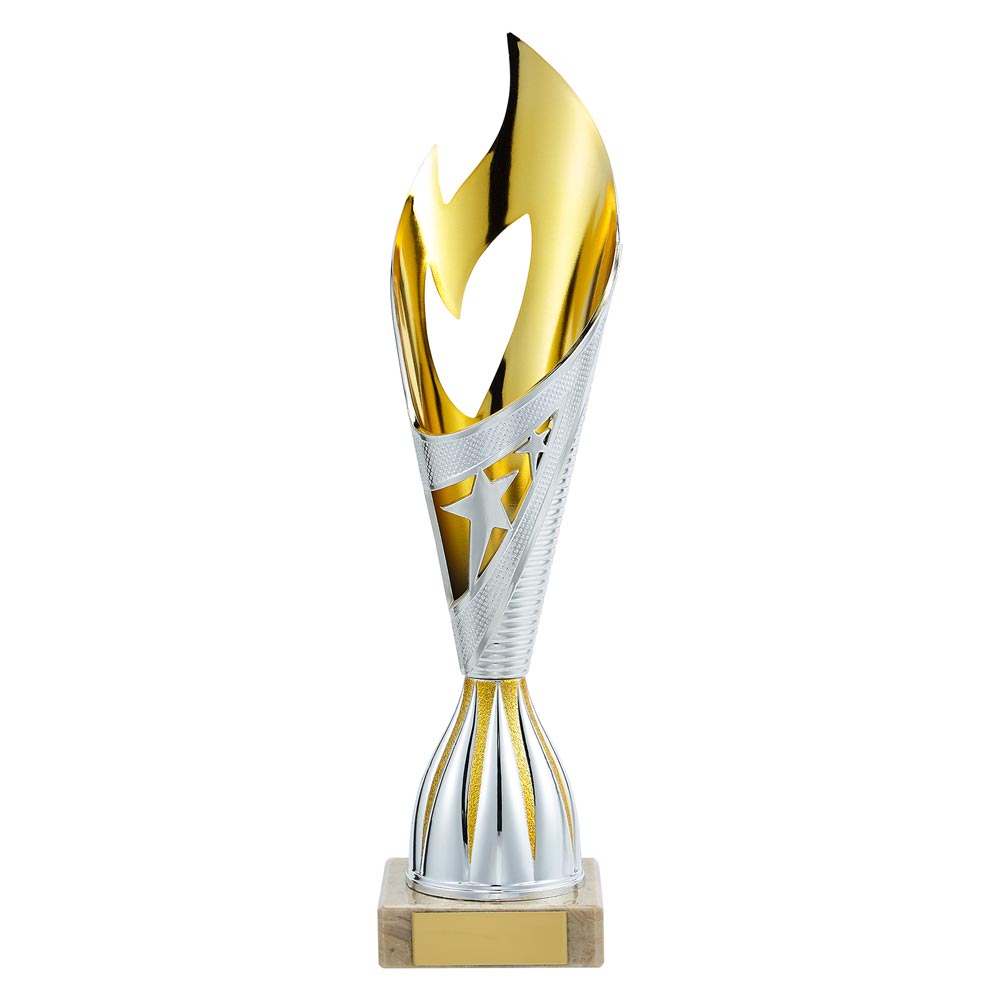 Inferno Plastic Laser Cut Cup Silver & Gold. Available with engraving of your choice. This personalised trophy is suitable for a range of events.