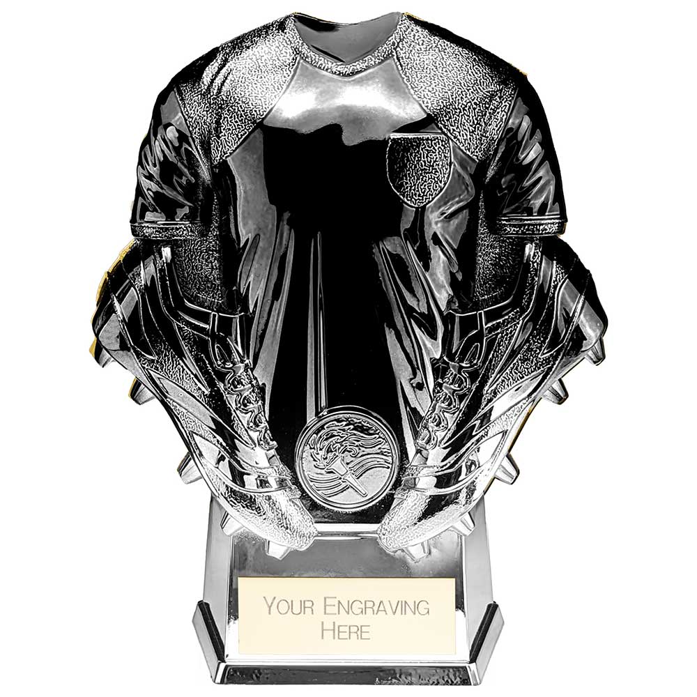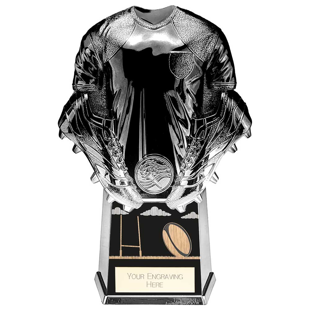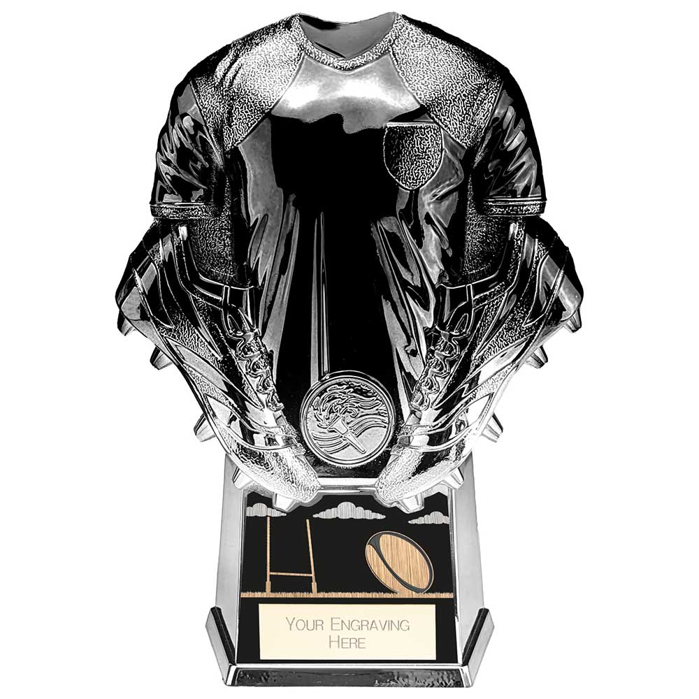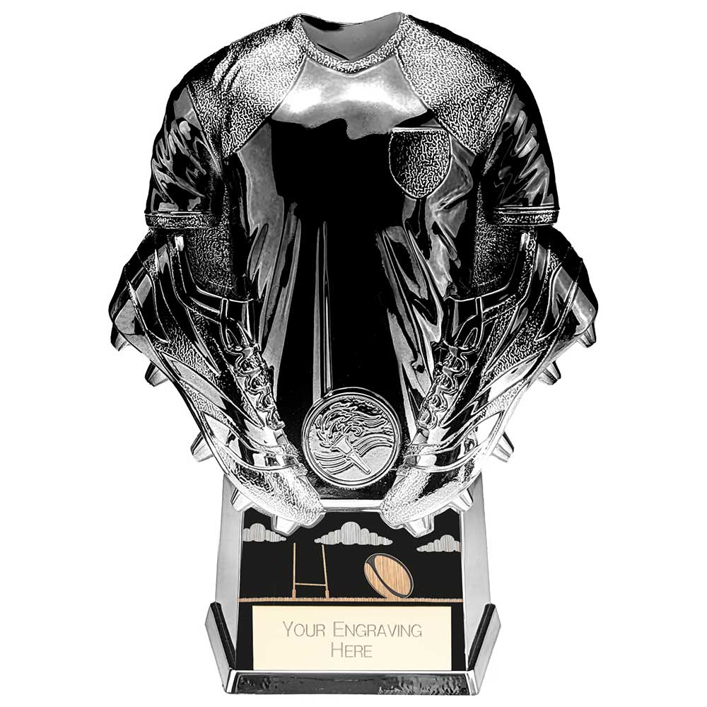 Add a touch of class to your rugby presentation with our Invincible Shirt Trophy! This plastic award range features a shiny high-detail shirt design, on a base with a 2-tone colour gradient finish. Available with engraved text of your choice. You can also upload an image (such as a club logo or photo) and we'll add a printed round centre disc to this award in the round space provided just above the base. Available in 4 sizes.