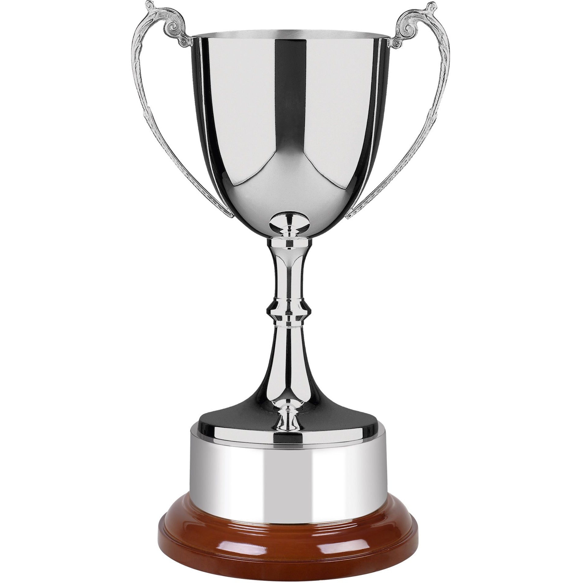 Handmade in Britain and available in 6 sizes with engraving of your choice. This nickel plated trophy features a highly polished body and stem, complete with nickel plated covered plinth bands mounted onto a rosewood finish base. Only the finest materials have been selected to manufacture these awards. Keeping traditional values and Great British quality.