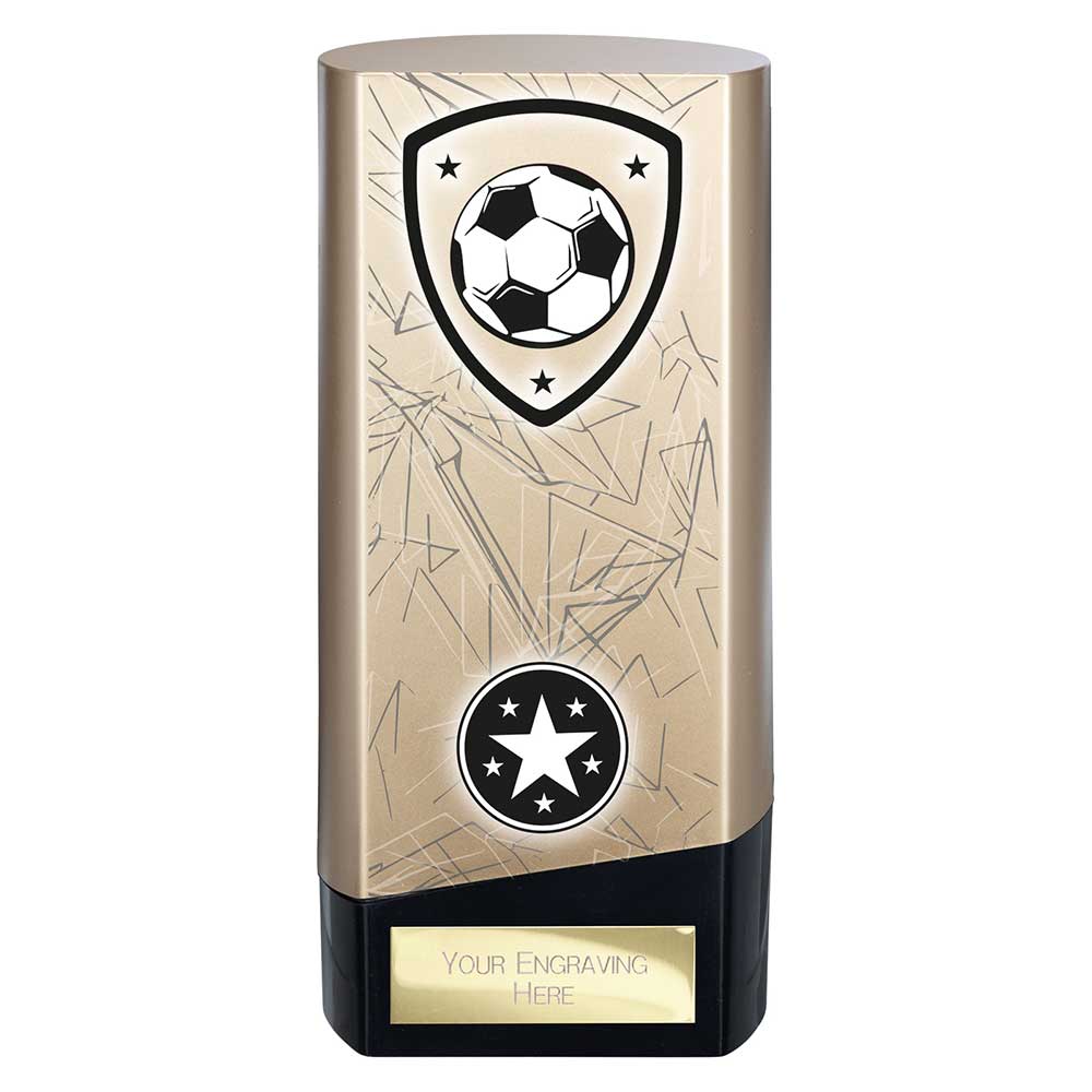 In an iconic, modern tower shape with 3 sizes to choose from, the Prime series is the ultimate way to reward football excellence! Featuring a pre-printed design available in a range of different colours and titles throughout our store - Search for 'Prime Football'. Available with engraved text of your choice, added to a personalised plaque applied to the lower part of the trophy. You can also upload an image, such as a club logo or photo, and we'll add a printed round centre disc to this award to be applied over the 1" circle/stars area.