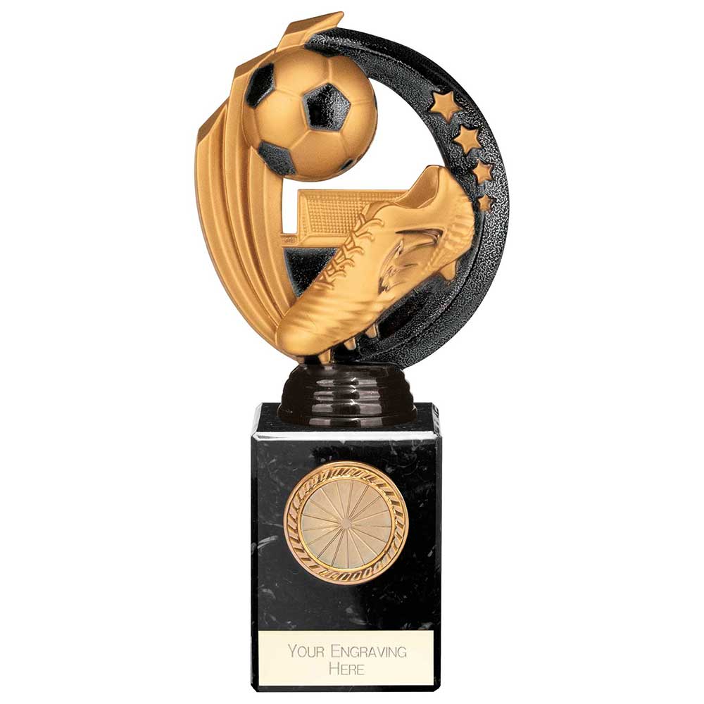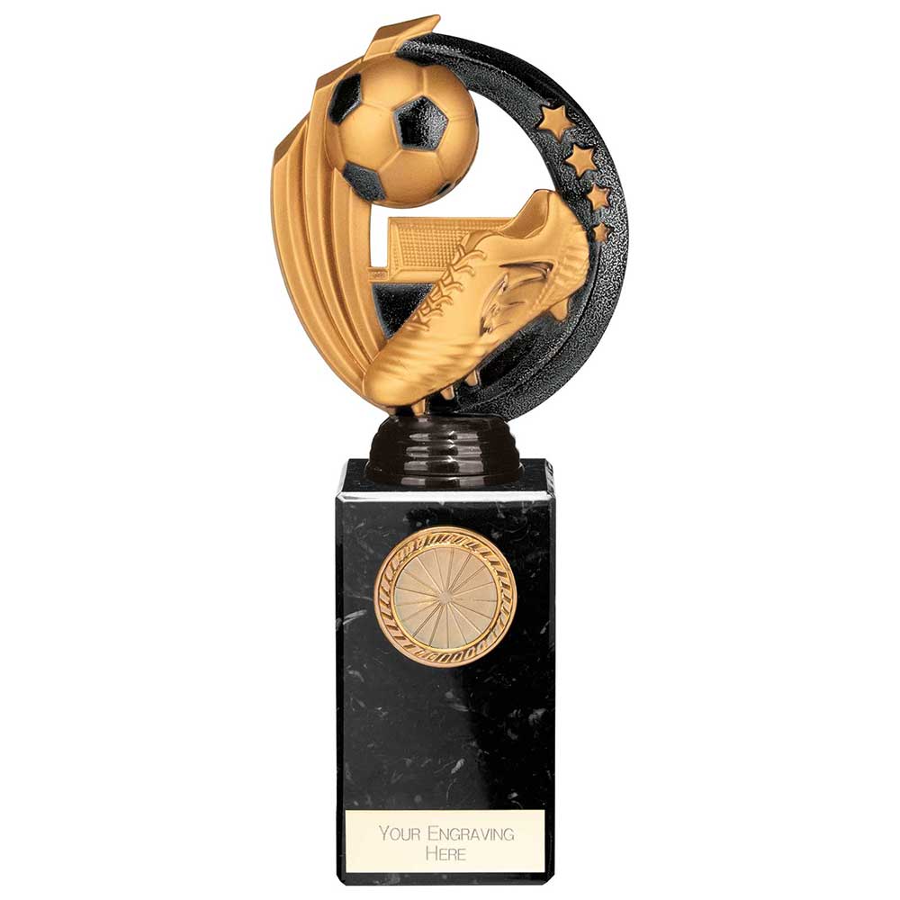 Renegade Legend Football Award Black. Available with personalised engraving and suitable for a range of football events and presentations. You can also upload an image/logo on the round 1" insert space provided.