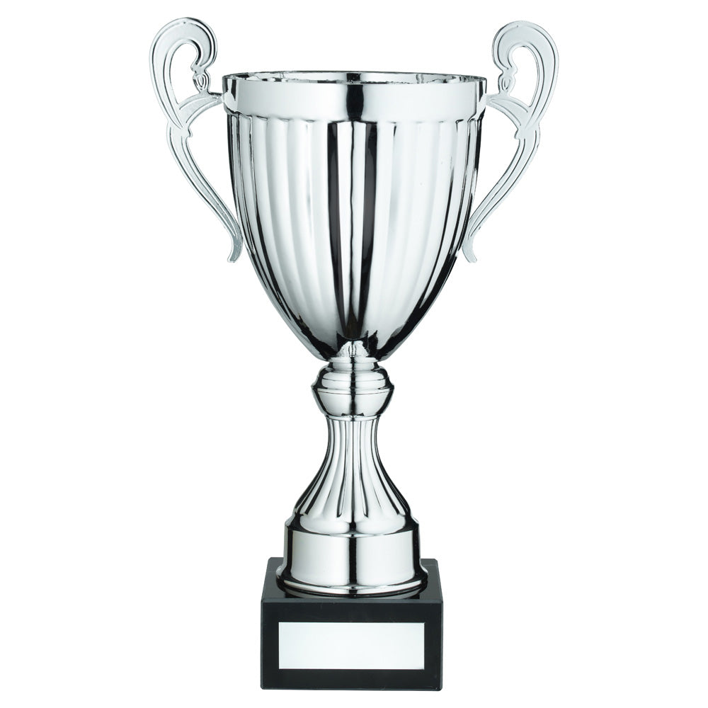 Featuring a classic, ridged design on the cup body with handles, this trophy cup is complimented with a black marble base. Add engraved words of your choice to the personalised silver coloured metal plaque as shown on the base to make it extra special. Available in 4 sizes.