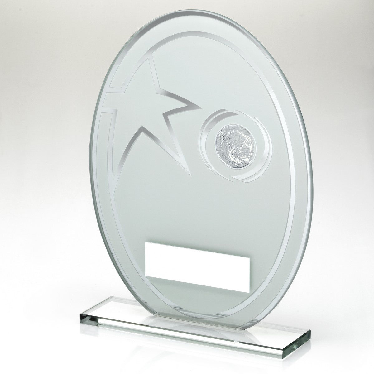 This glass trophy is available in 3 sizes with personalised engraving and suitable for a range of golf events and presentations. You can also upload an image/logo on the round 1" insert space provided.