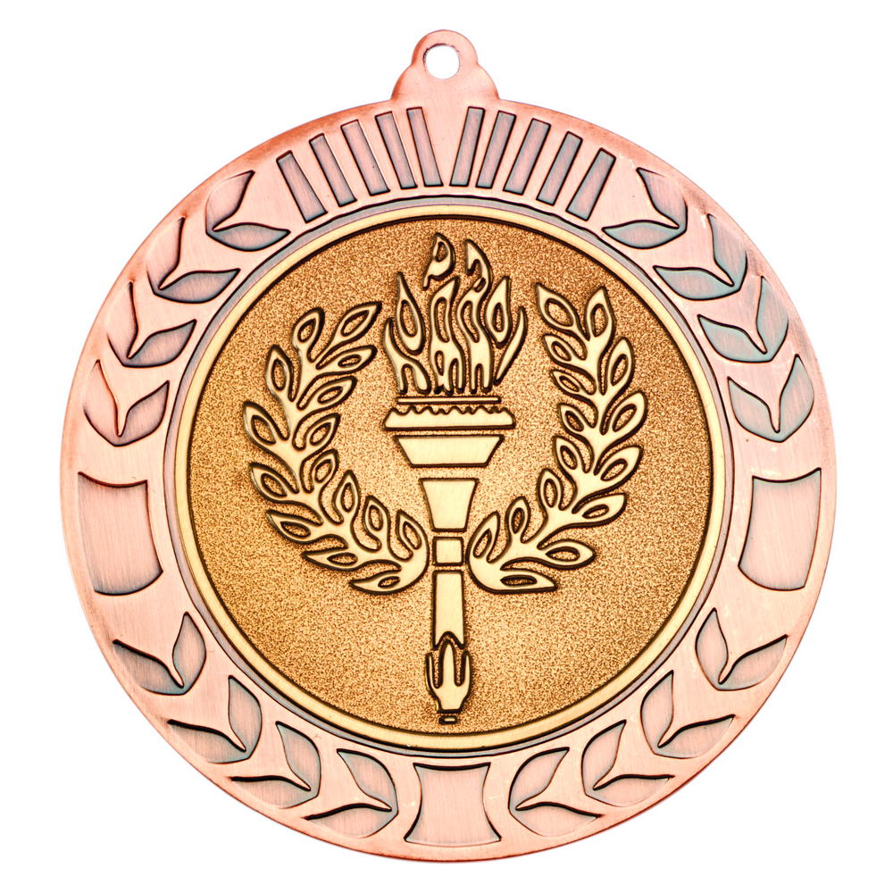 Wreath Medal (2in Centre) - Bronze 2.75in. Made of metal, this quality medal is available with optional engraving of your choice. Makes a perfect personalised gift for all occasions or presentations.